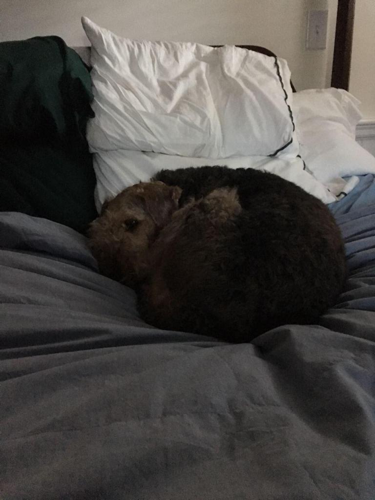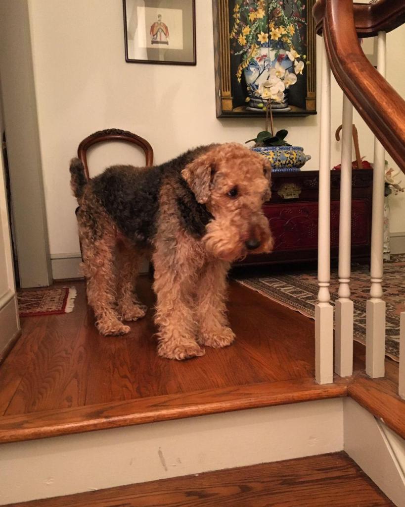 There were a few instances where she took to the streets to try and make friends with the neighbors. An airedale that doesn’t want to be caught is not one that you’re likely to catch. After that, she wore a collar bearing her name and mom’s phone number.
